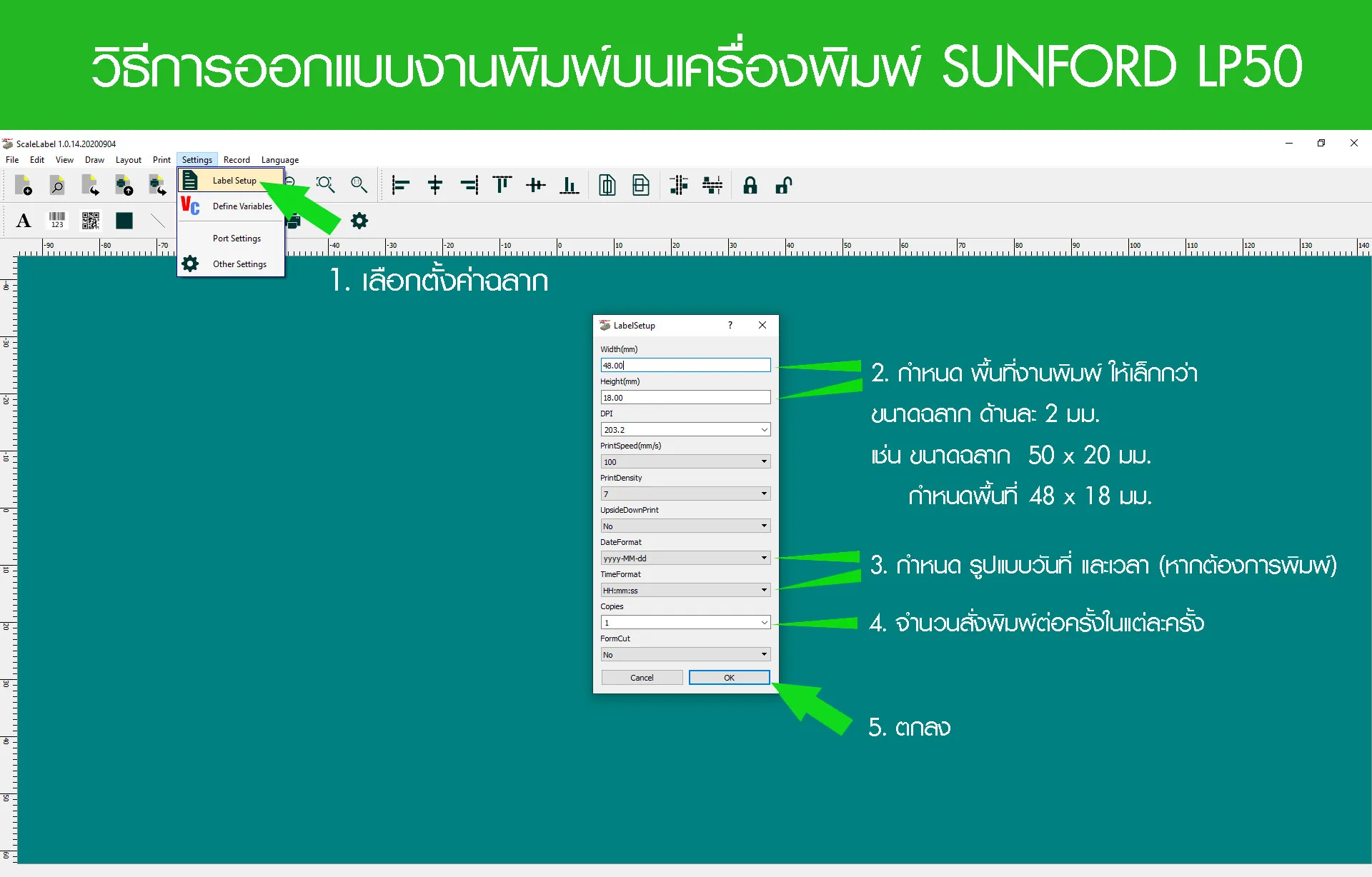 ด้วยเครื่องพิมพ์ SUNFORD LP50 Label Printer